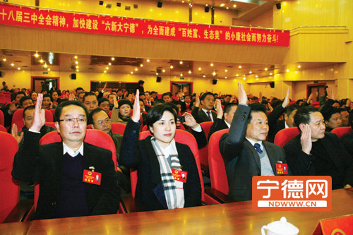改革重任在肩,发展正当其时。谢仰俊希望广大代表紧密团结在以习近平同志为总书记的党中央周围,在市委的坚强领导下,进一步解放思想,求真务实,抢抓机遇,跃马奋进,为加快建设“六新大宁德”,全面建成小康社会而努力奋斗!